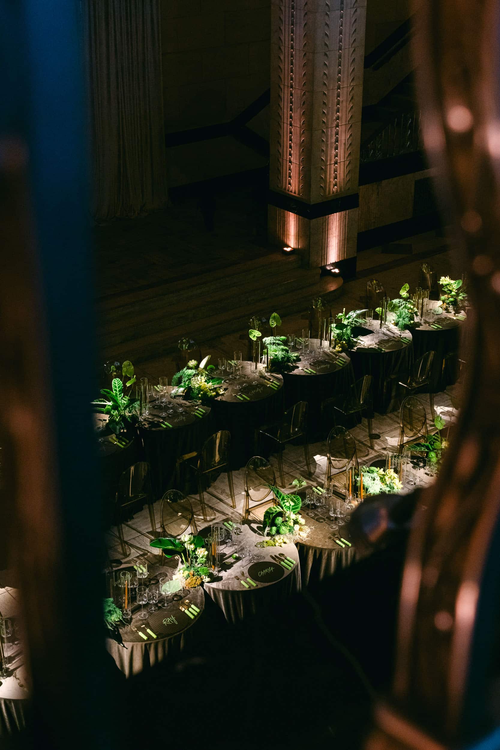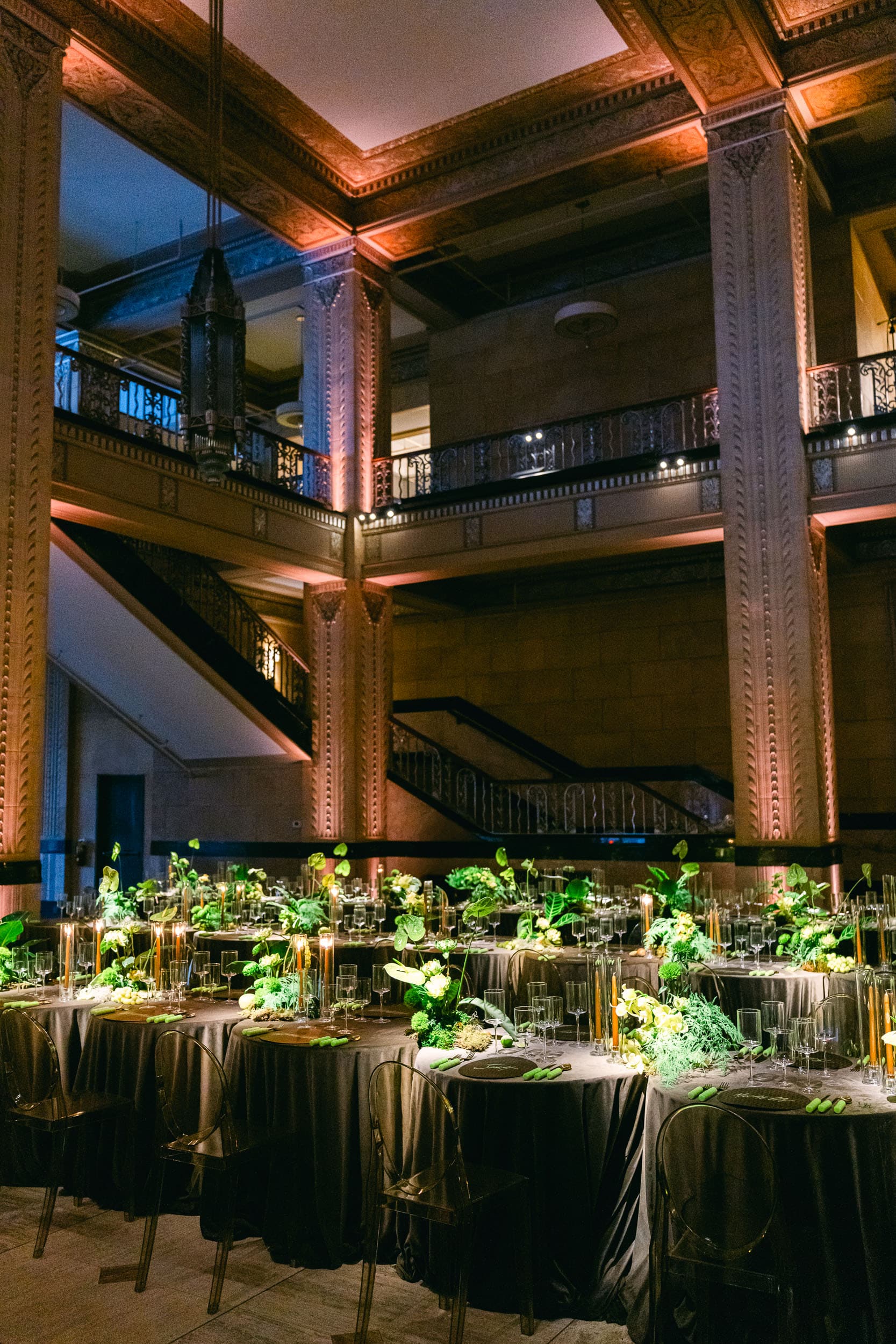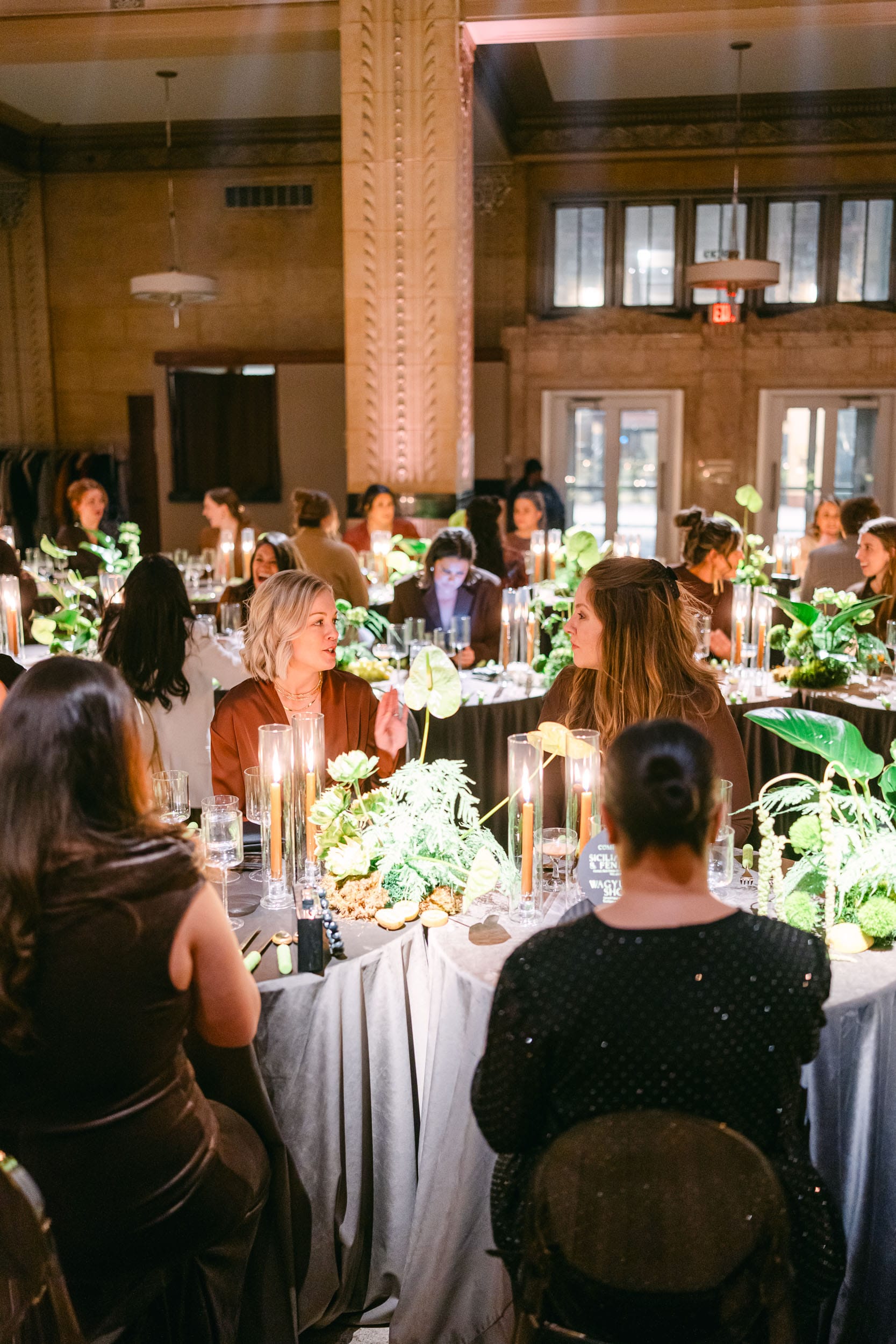 On Tuesday night we were entertained in style at the Grand Hall in Kansas City at an event designed by Grit and Grace and Produced by Events by Elle. We had the privilege of photographing the event and design, which was inspired by a set of chartreuse, bubble-pattern flatware.