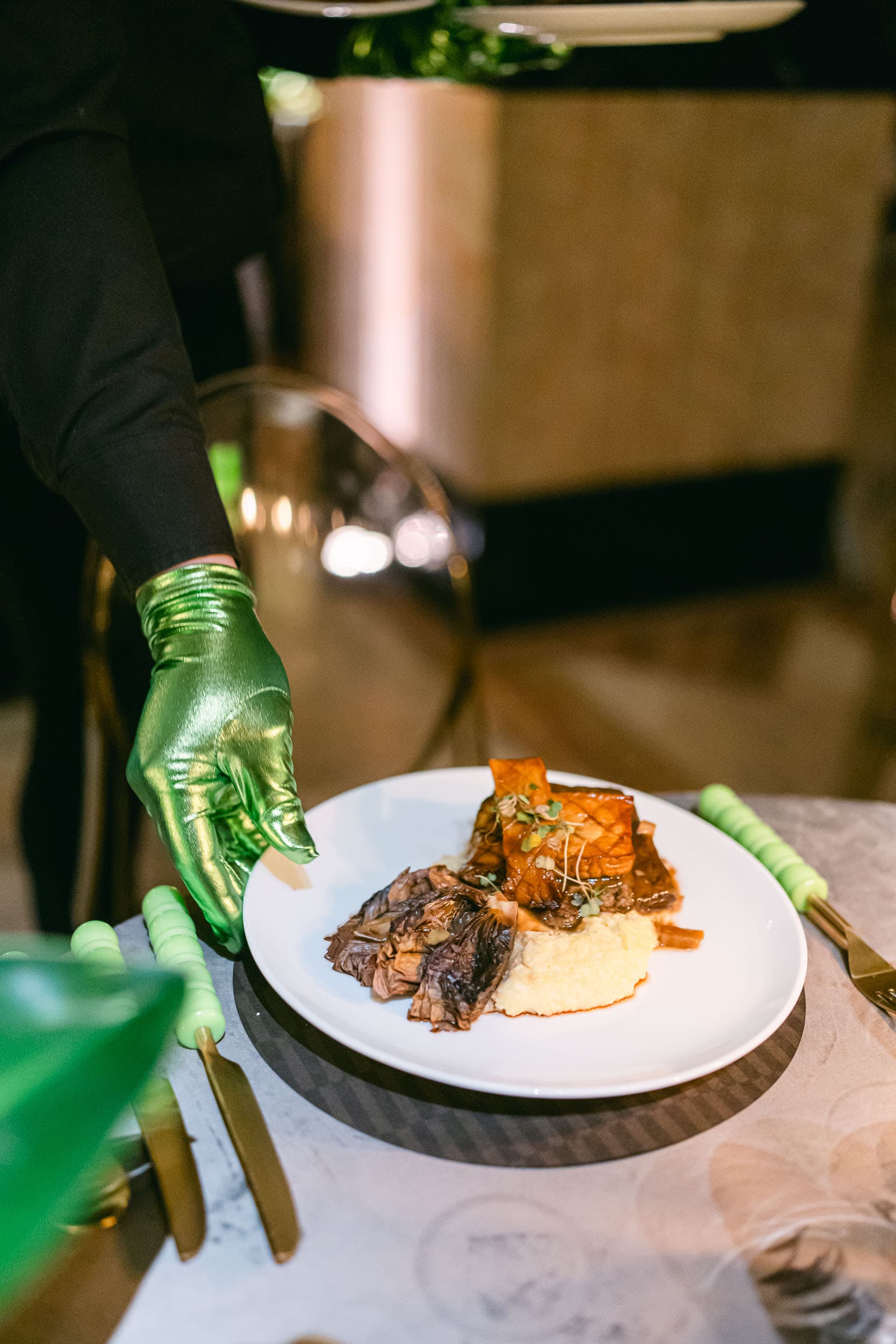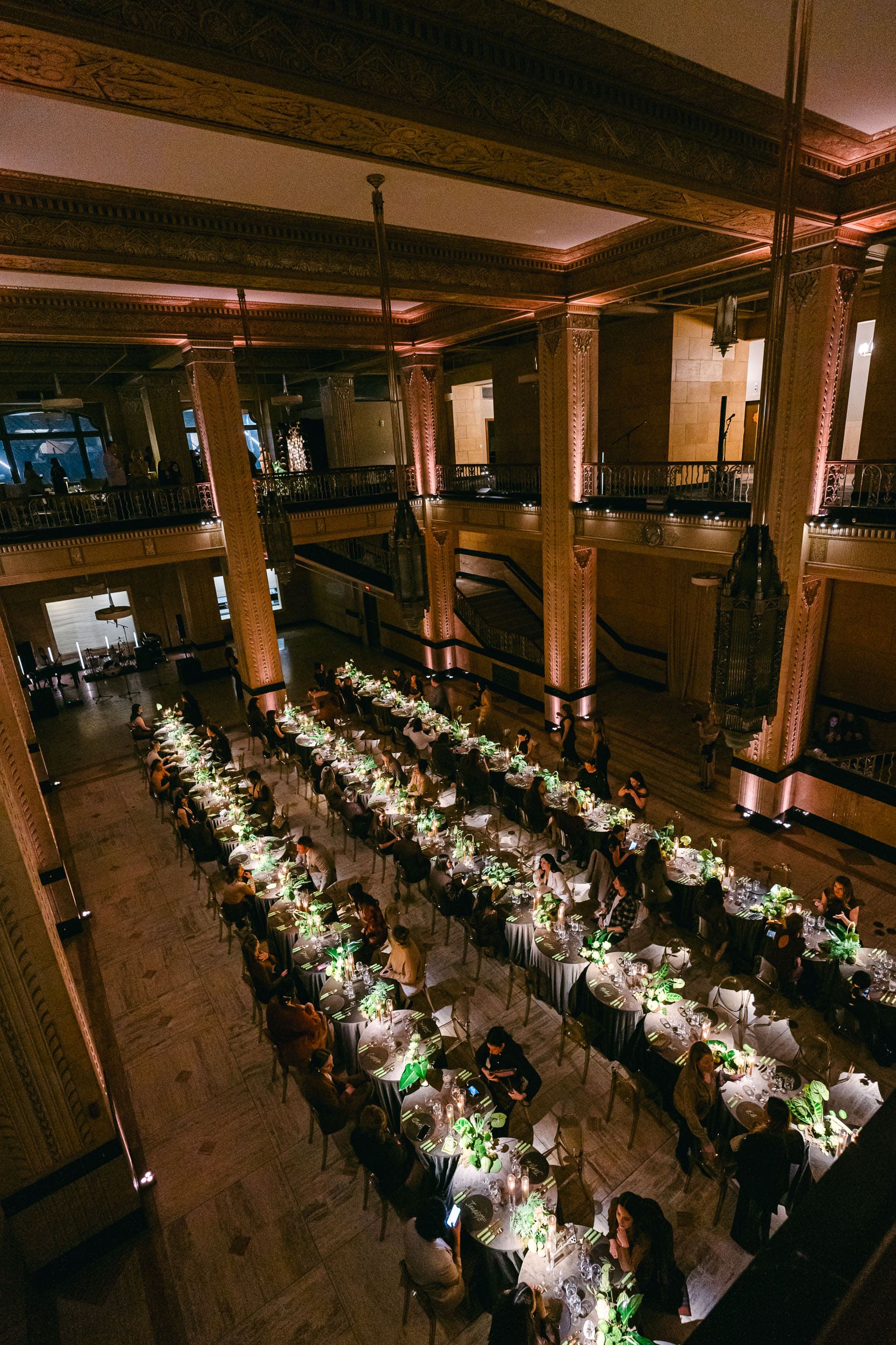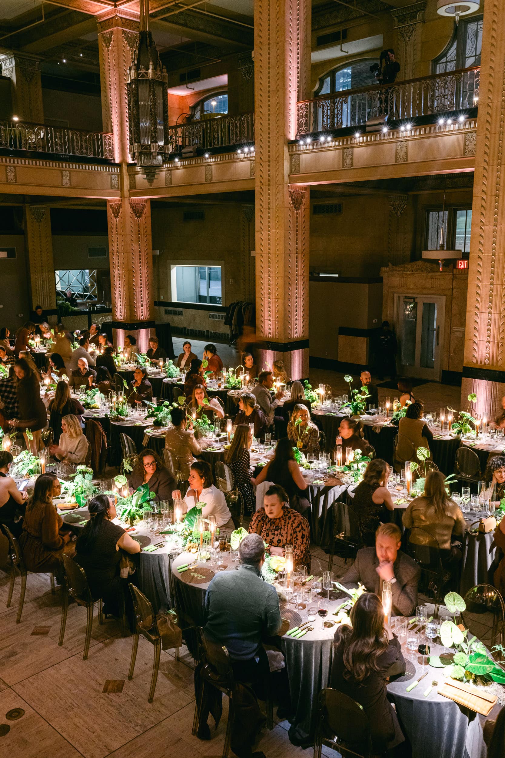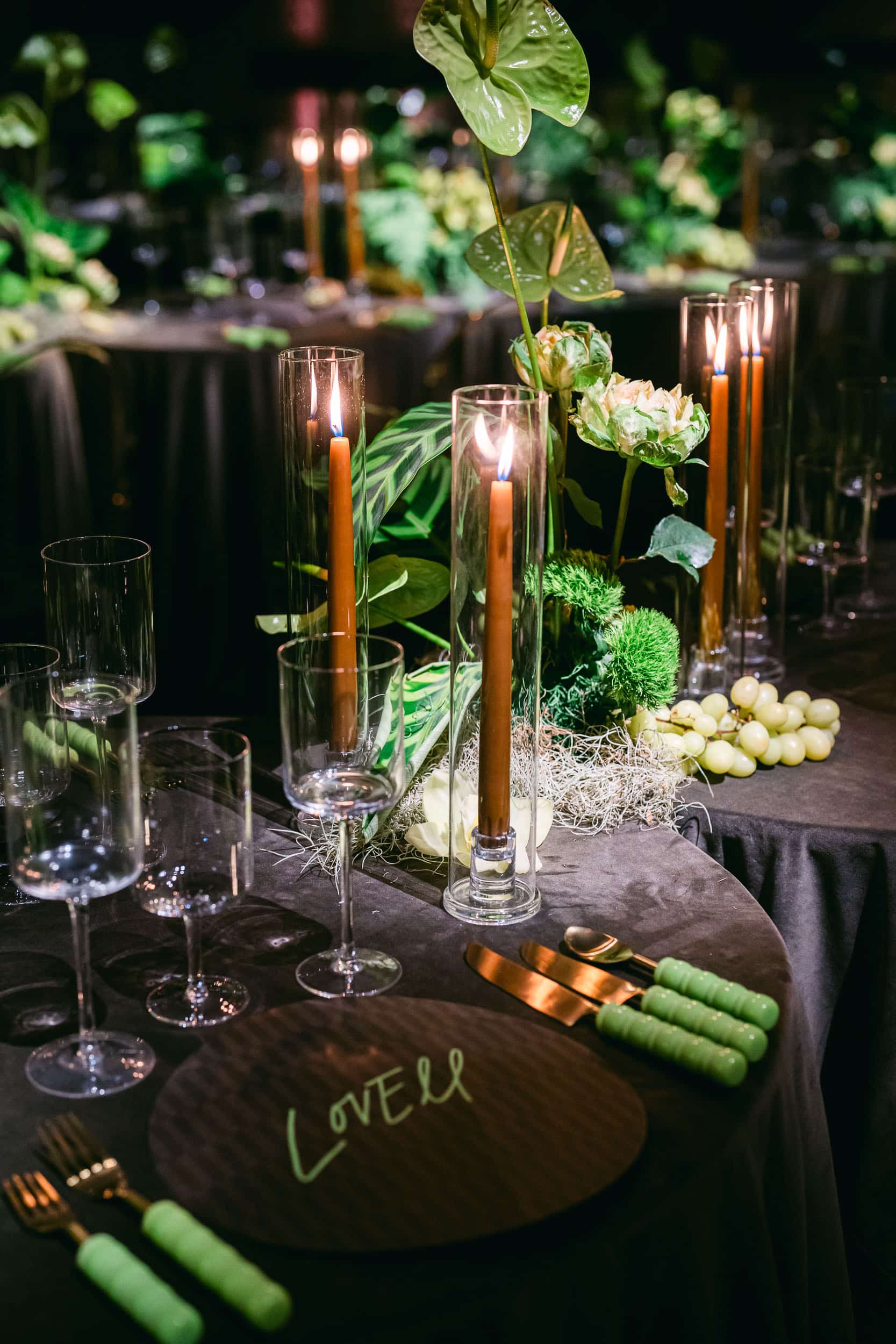 On Tuesday night we were entertained in style at the Grand Hall in Kansas City at an event designed by Grit and Grace and Produced by Events by Elle. We had the privilege of photographing the event and design, which was inspired by a set of chartreuse, bubble-pattern flatware.
